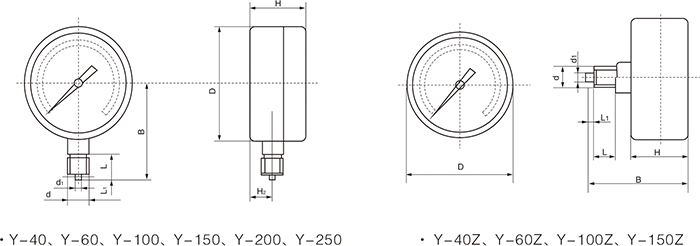 1)表盤直徑(mm):¢40;¢50;¢60;¢75;¢80;¢100;¢150;¢200;¢250