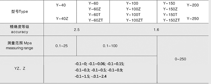 測(cè)量范圍:0-0.1~0-100MPa, -0.1-0, -0.1-2.4MPa。