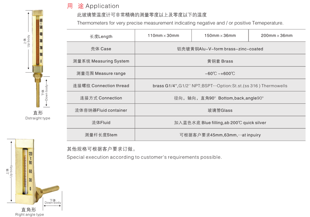 直型角型金屬外殼玻璃管溫度計