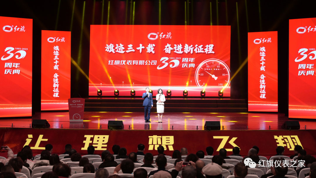 下午,紅旗儀表有限公司“旗跡三十載,奮進新征程”成立三十周年慶典在長興大劇院正式拉開帷幕。