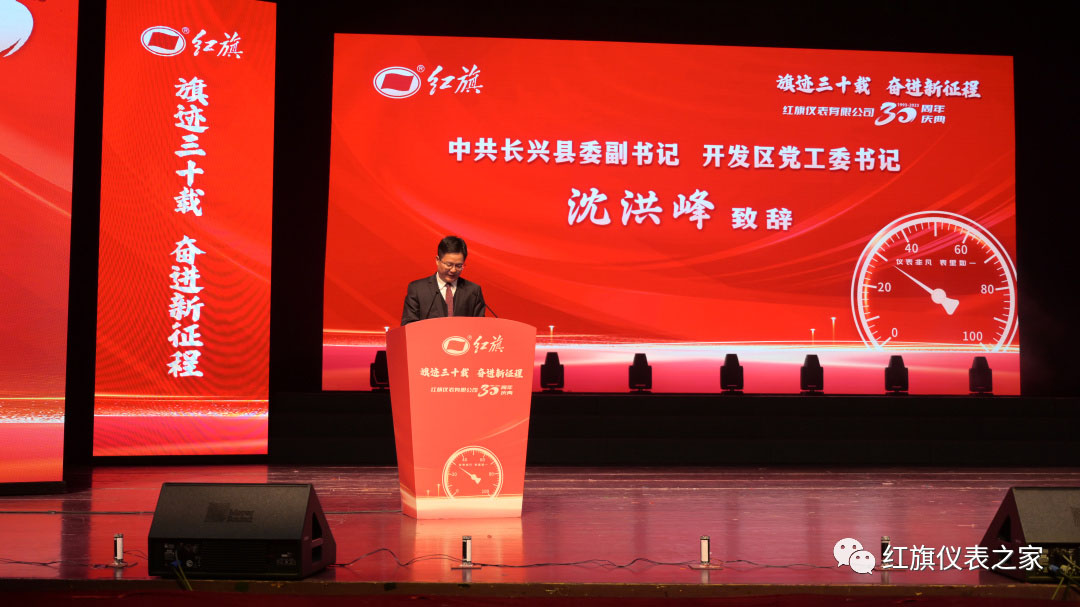 中共長興縣委副書記、開發(fā)區(qū)黨工委書記沈洪峰代表縣委縣政府、開發(fā)區(qū)黨工委致辭。沈書記充分肯定了紅旗儀表三十年來取得的卓越成果和企業(yè)文化建設等方面的優(yōu)秀成效,特別在2007年入戶長興后緊緊圍繞全縣發(fā)展大局不斷做大做強,為開發(fā)區(qū)智能裝備制造產業(yè)的發(fā)展和全縣經濟社會的發(fā)展貢獻了紅旗力量,為縣內其他企業(yè)做優(yōu)企業(yè)文化、做好引才留才工作提供了寶貴的紅旗經驗,得到了社會各界的充分認可和高度贊譽。沈書記祝福紅旗以三十周年為新起點,繼續(xù)扎根長興、投資長興,期待紅旗儀表攜手長興創(chuàng)造更多的輝煌。